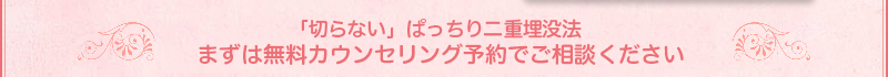 「どうしても平行二重にしたいけど、切りたくない。まぶたが重いから、埋没法だと奥二重しかできないんでしょうか?プチ整形してみたいけど年齢的にまぶたのたるみが多いからだめよね。切るならあきらめます。」など、多くの患者さんからお声を頂きました。